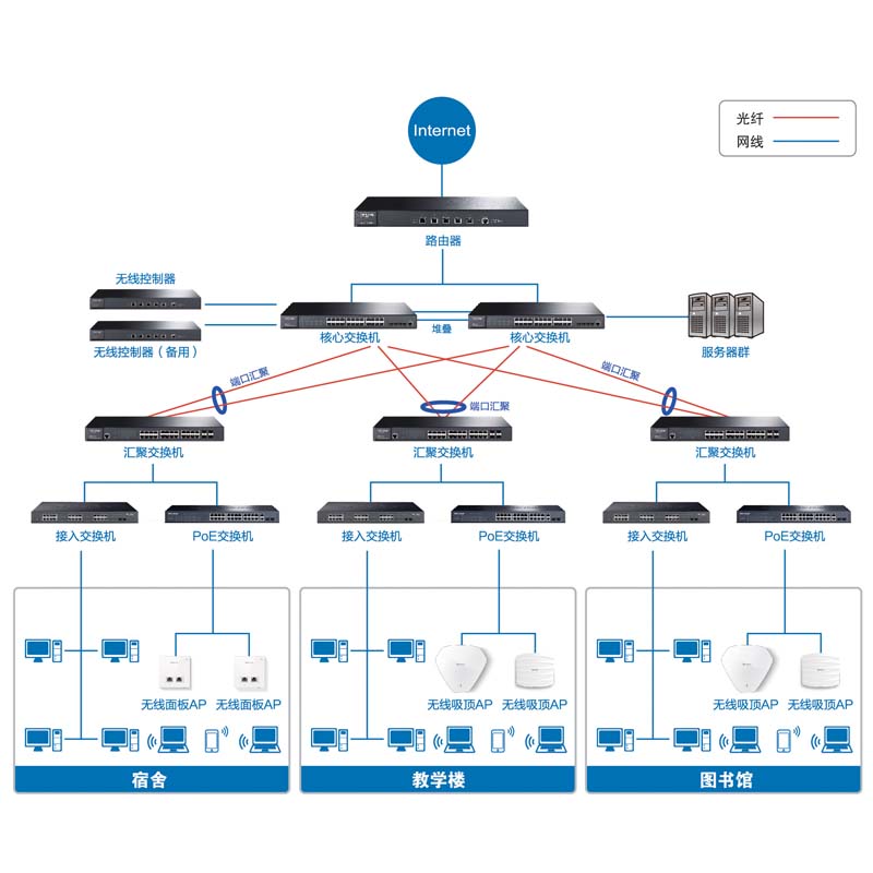 1、有线无线一体化网络覆盖,满足老师和学生随时随地上网的需求